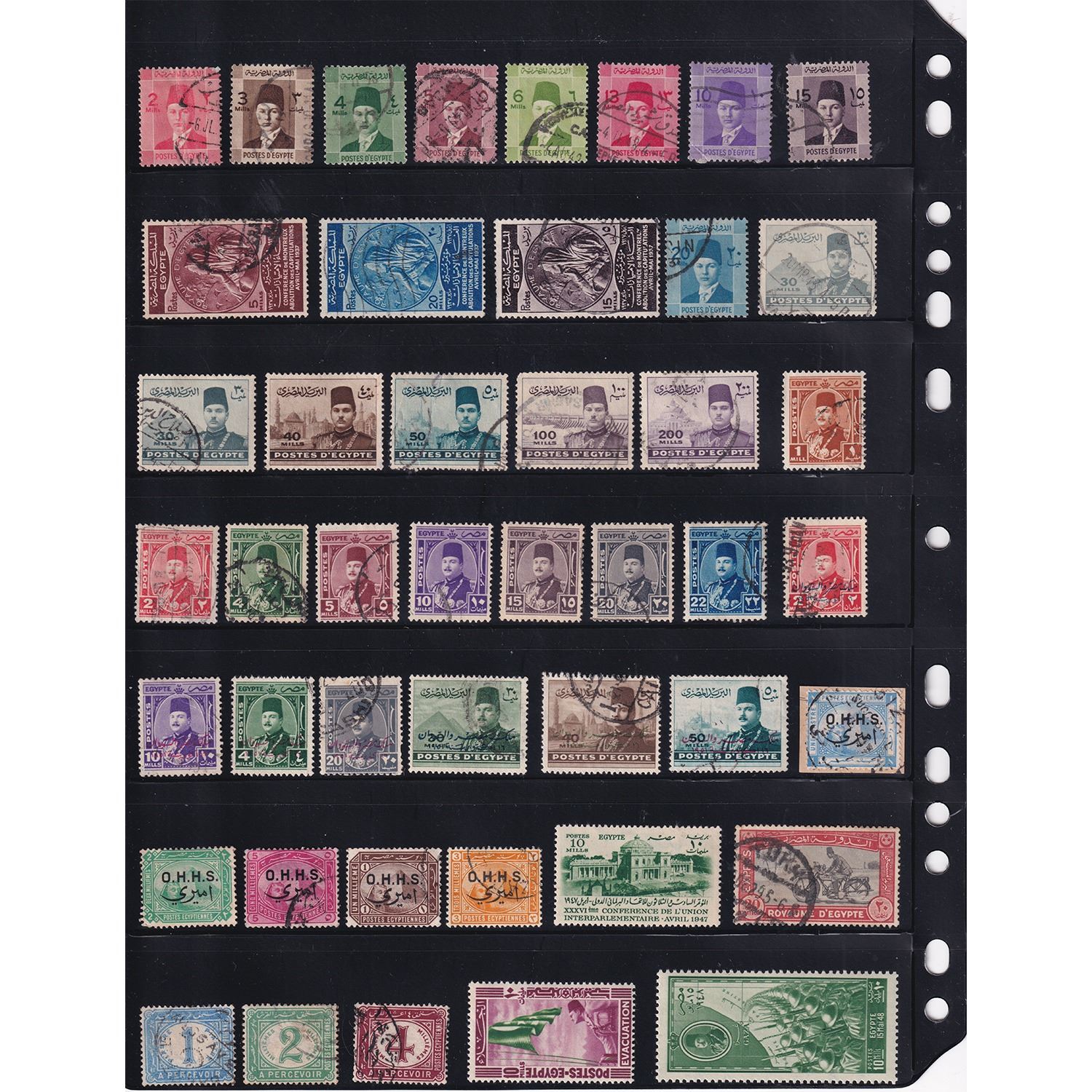 Egypt 1870s-1950s Assorted Stamps Most with Partial Postmarks. Interesting vintage collection including examples issued from about 1879 to 1952. NOTABLE INCLUSIONS: 1914 Egyptian History Series 20M (brownish olive version), 1943 Motorcyclist "Postes Expres", 1948 Arrival of Egyptian Troops in Gaza, & More!! Please view images for details and quality. 91pcs.