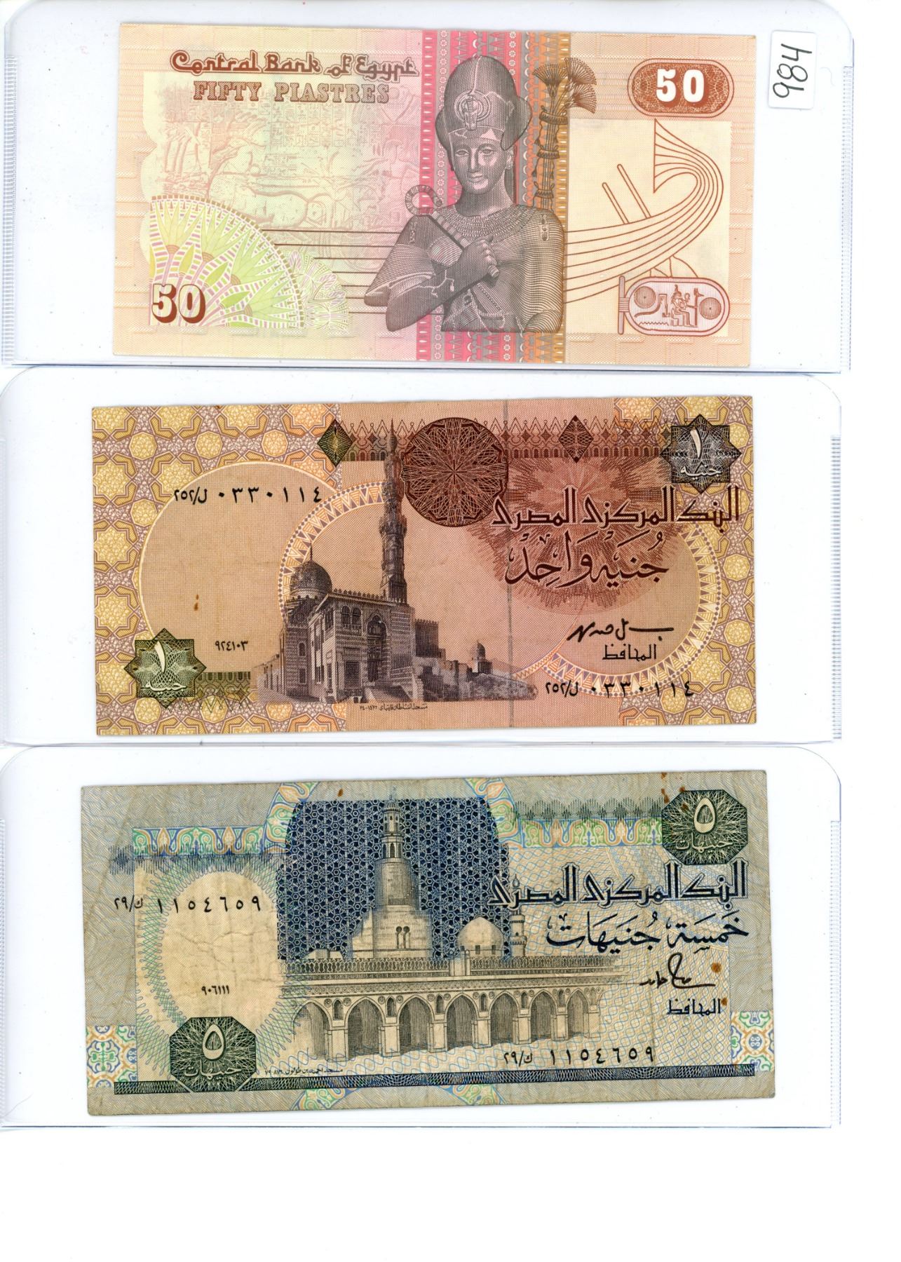 Egypt - 1981 50 piastres, 1978 one pound and 1979 five pound notes