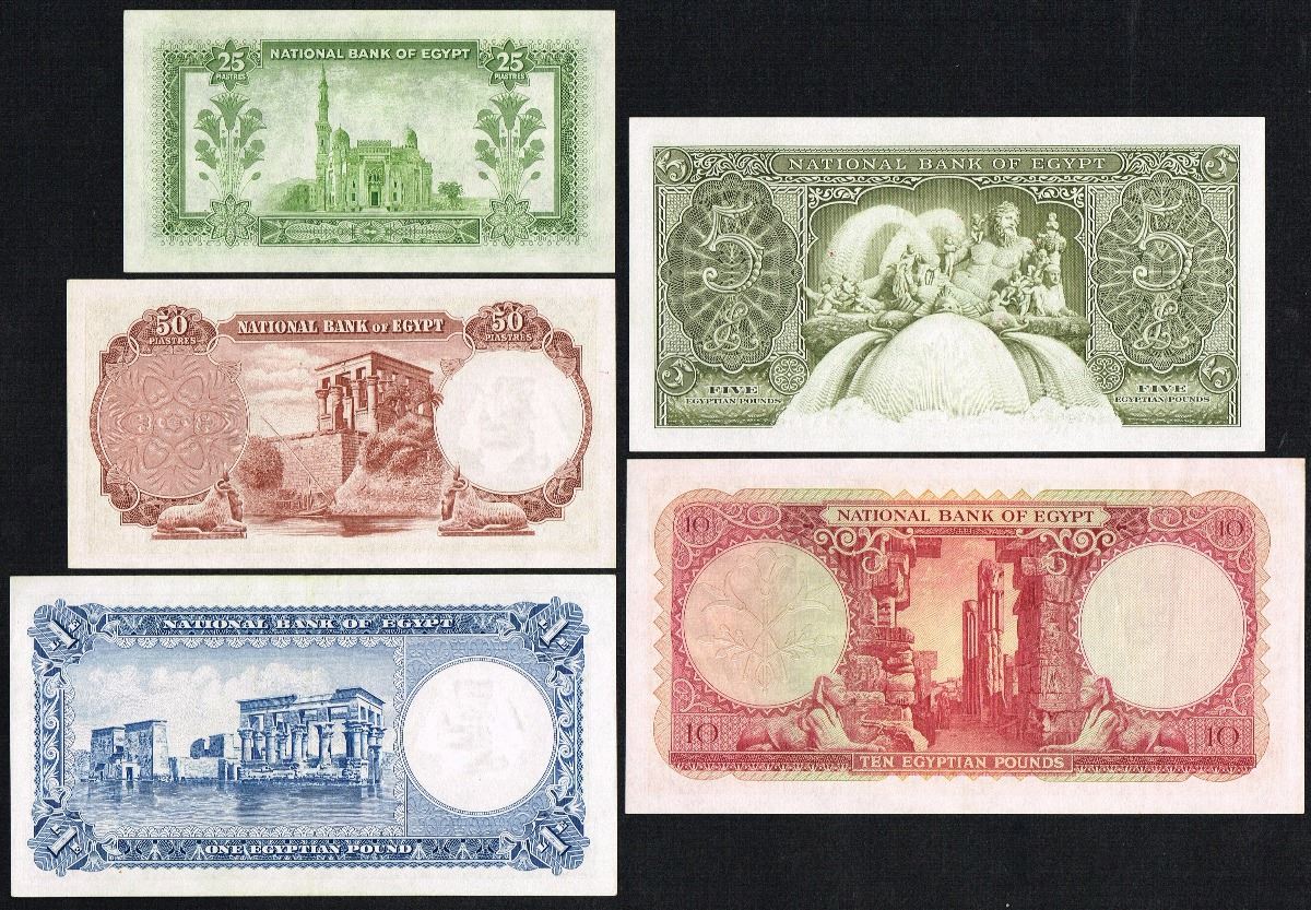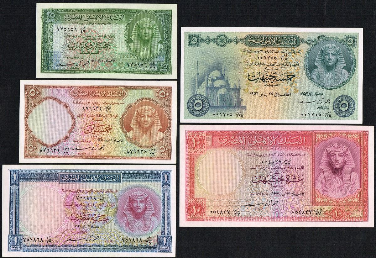 Egypt, 25 Piastres-10 pounds, 1952-1960, Pick# 28 - 32, National Bank of Egypt,1952 Issue, XF-UNC
