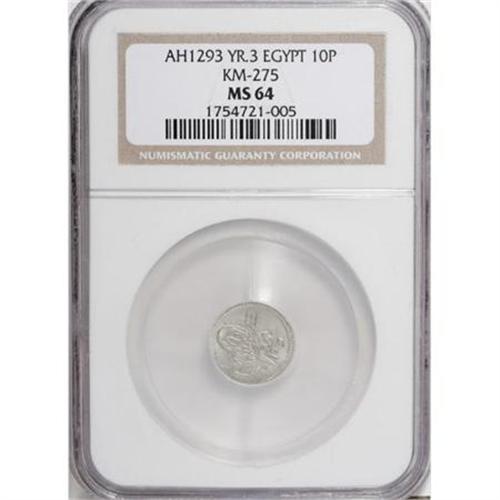 <B>Abdul Hamid II 10 Para 1293AH Year 3,</B></I> KM275, MS64 NGC, incredibly bold strike for this thin issue, lightly toned and very attractive. Very scarce type in this quality.<BR><BR><b>Shipping:</b> Coins & Currency (<a target="_blank" href="http://www.heritageauctions.com/common/shipping.php">view shipping information</a>)