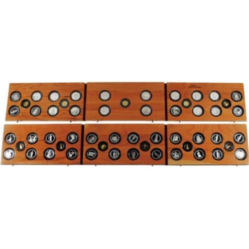<B>Arab Republic, Treasures of Egypt gold and silver Collection, </B></I> All Gem Proof with Some Toned, including Silver 5 Pounds 1993 Menakaure Triad, KM746, Silver 5 Pounds 1993 Cleopatra, KM735, Silver 5 Pounds 1993 Pyramids, KM740, Silver 5 Pounds 1993 Sphinx, KM741, Silver 5 Pounds 1993 King Narmur Smiting a Foe, KM742, Silver 5 Pounds 1993 Guardian Goddess Serket, KM743, Silver 5 Pounds 1993 Amulet of Hathor, KM744, Silver 5 Pounds 1993 Standing Ramses II, KM745, Silver 5 Pounds 1993 Symbol of Unification, KM747, Silver 5 Pounds 1994 Kneeling King Pepi I, KM748, Silver 5 Pounds 1993 Tutankhamen’s Burial Mask, KM793, Silver 5 Pounds 1994 Sphinx and Pyramids, KM749, Silver 5 Pounds 1994 King Djoser, KM750, Silver 5 Pounds 1994 King Khonsu, KM751, Silver 5 Pounds 1994 RE Presenting the Ankh to Sesostris I, KM752, Silver 5 Pounds 1994 God Horus, KM753, Silver 5 Pounds 1994 God Seth, KM754, Silver 5 Pounds 1994 Queen Nefretari, KM757, Silver 5 Pounds 1994 Bust of Nefertiti, KM783, Silver 5 Pounds 1994 Archer in Chariot, KM784, Silver 5 Pounds 1994 Five Birds, KM785, Silver 5 Pounds 1994 Hippopotamus, KM786, Silver 5 Pounds 1994 Ruins of Karnak, KM787, Silver 5 Pounds 1994 Goddess Neith, KM788, Silver 5 Pounds 1994 Statue of King Amenemhat III, KM789, Silver 5 Pounds 1994 Ritual Mask of Queen Hatshepsut, KM790, Silver 5 Pounds 1994 Jeweled Cat, KM794, Silver 5 Pounds 1994 Sacred Falcon at Edfu, KM795, Silver 5 Pounds 1994 Tutankhamen’s Throne, KM797, Silver 5 Pounds 1994 King Au, KM798, Silver 5 Pounds 1994 Akhnaton, KM799, Silver 5 Pounds 1994 Osiris, KM800, Silver 5 Pounds 1994, RE the Sun God, KM801, Silver 5 Pounds 1994 God Khnoum, KM802, Silver 5 Pounds 1994 Sobek Crocodile God, KM803, Silver 5 Pounds 1994 Temple of Ramses II, KM823, Silver 5 Pounds 1994 Ancient Ruins, KM824, Silver 5 Pounds 1994 King Thoutmosis III, KM826, Silver 5 Pounds 1994 King Khufu, KM827, Silver 5 Pounds 1994 Goddess Hathor, KM828, Silver 5 Pounds 1994 God Ptah of Memphis, KM829, Silver 5 Pounds 1994 Goddess Isis Nursing Child, KM830, Silver 5 Pounds 1994 Dwarf Seneb and Family, KM831, Silver 5 Pounds 1994 Akhnaton and Family, KM889, Gold 50 Pounds 1993 King Tutankhamen’s Burial Mask, KM755, Gold 50 Pounds 1993 Cleopatra, KM756, Gold 50 Pounds 1993 Sphinx, KM776, Gold 50 Pounds 1993 Ramses II, KM777, Gold 50 Pounds 1994 Crowned Falcon, KM778, Gold 50 Pounds 1993 Pyramids, KM775, Gold 50 Pounds 1994, Queen Nefertiti, KM779, Gold 50 Pounds 1994 Jeweled Cat, KM780, Gold 50 Pounds 1994 Archer in Chariot, KM781, Gold 50 Pounds 1994 God Seth, KM782 and Gold 50 Pounds 1994 Seated Scribe, KM877. The coins are housed in a custom wooden cabinet.<BR><BR><b>Shipping:</b> Coins & Currency (<a target="_blank" href="http://www.heritageauctions.com/common/shipping.php">view shipping information</a>)