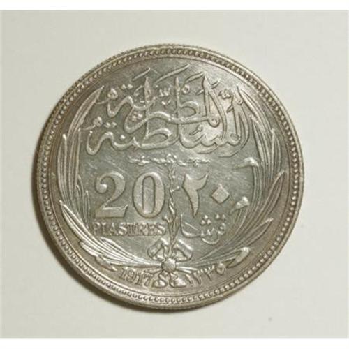 <B>British Protectorate 20 Piastres 1917,</B></I> KM321, XF-AU, lightly cleaned.<BR><BR><b>Shipping:</b> Coins & Currency (<a target="_blank" href="http://www.heritageauctions.com/common/shipping.php">view shipping information</a>)
