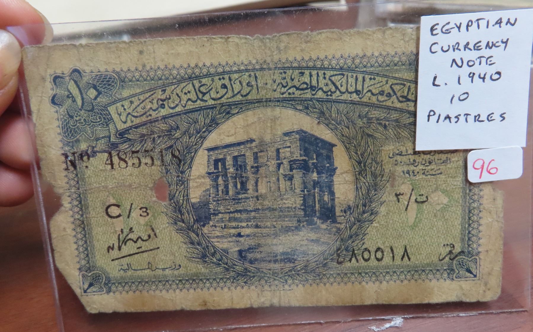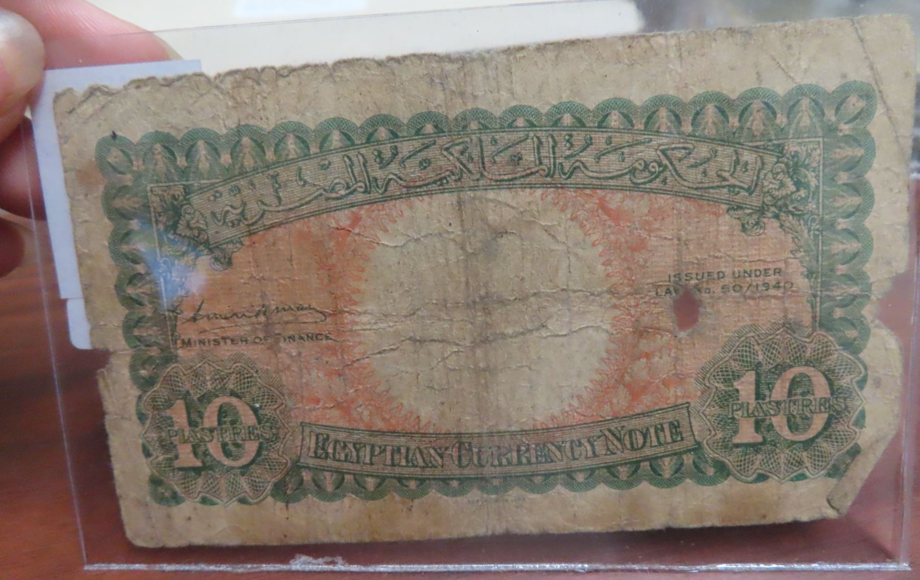 Egypt. Egyptian Currency Note. L-1940. 10 Piastres. World War II issue. VG with pieces missing.