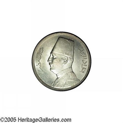 <B>Fuad 20 Piastres 1933, </B></I>KM352, nice UNC, superior surfaces with very few contact marks, one tiny reverse rim nick.