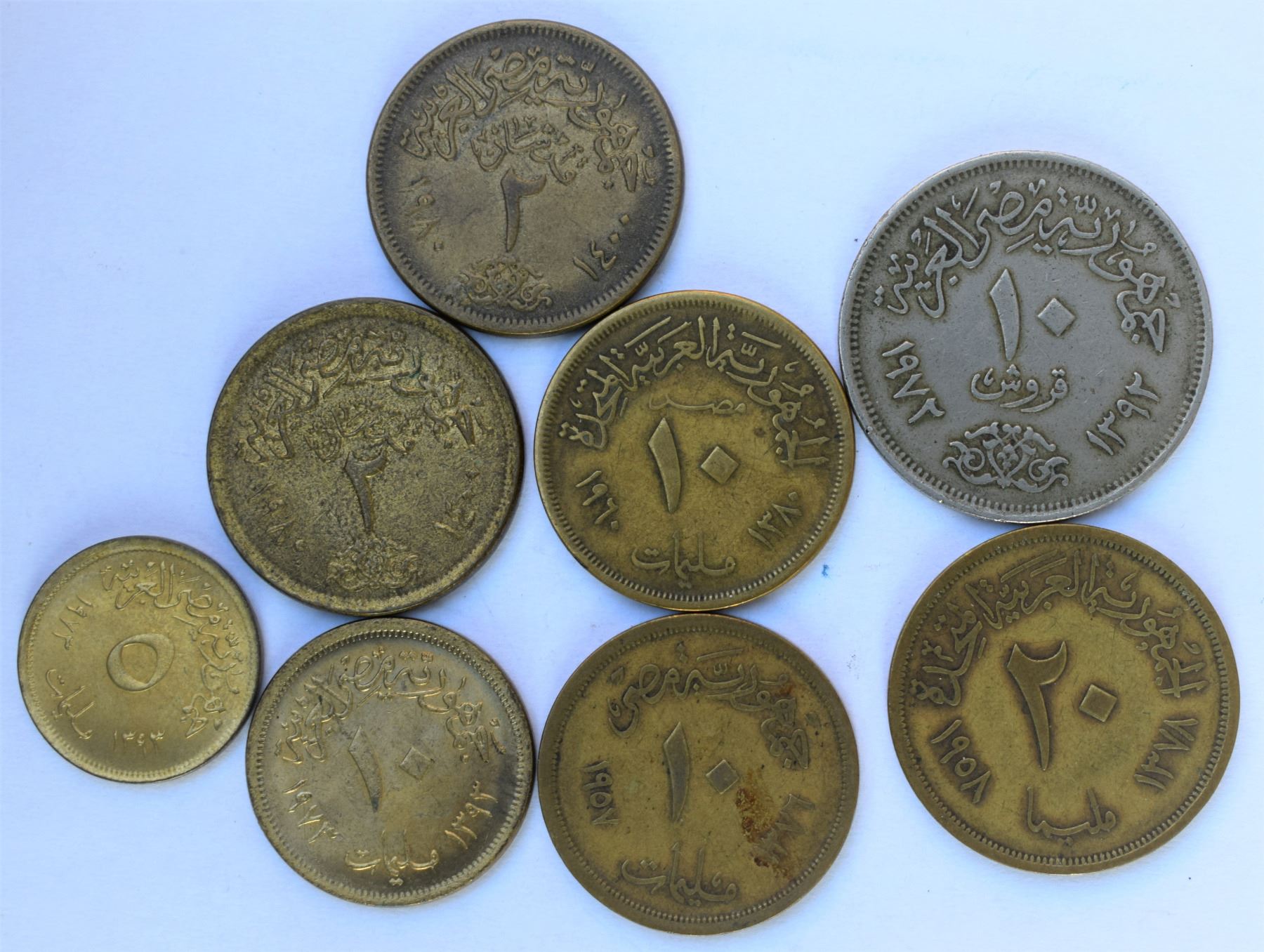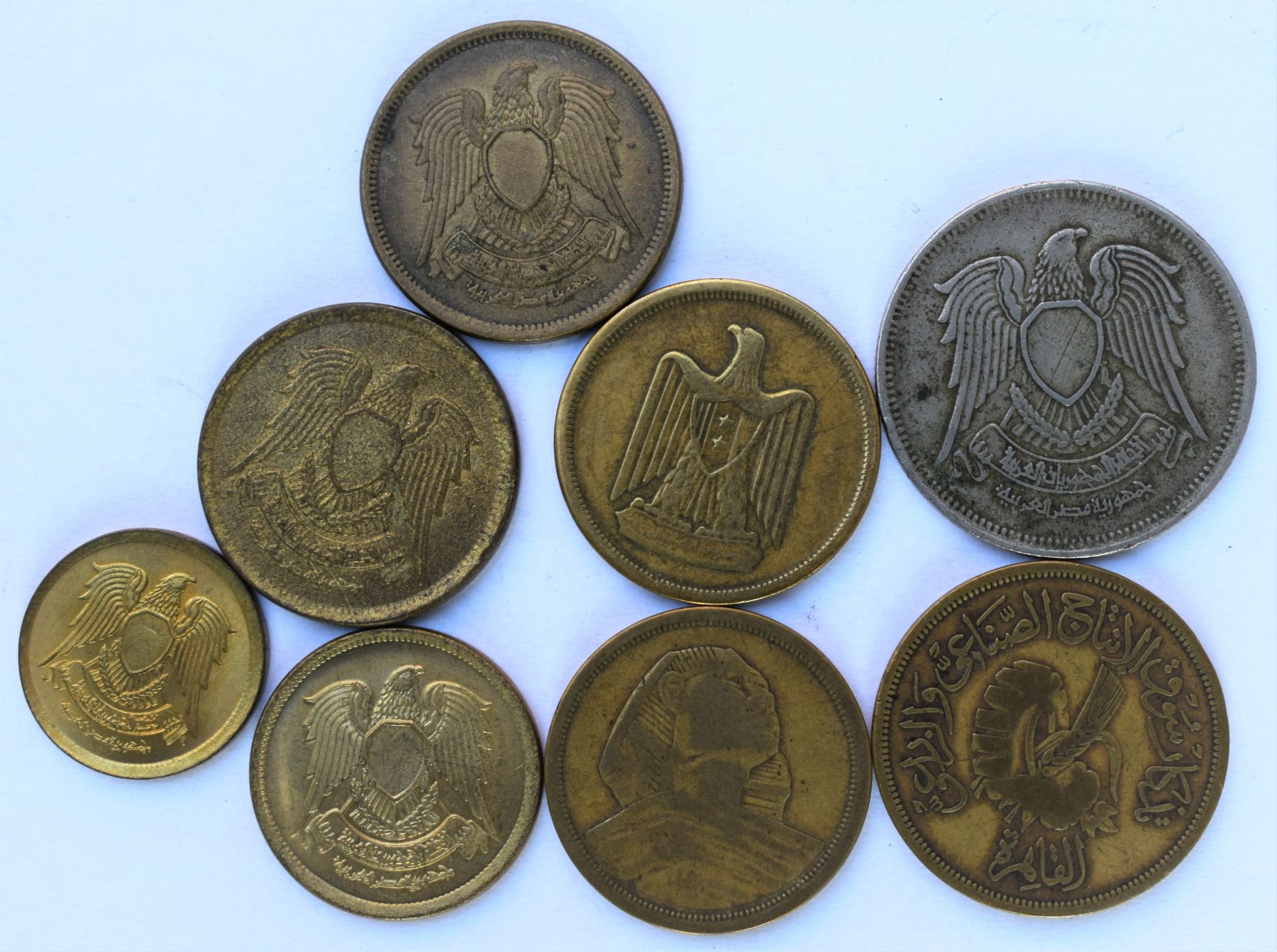 Egypt, Group of 8 Coins 50s-70s VF+ to UNC/MS