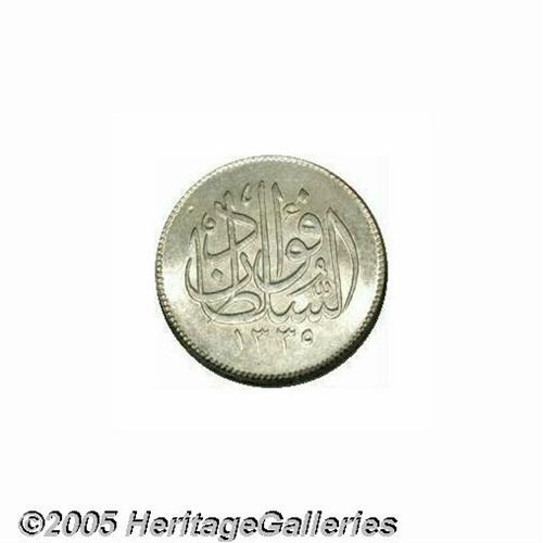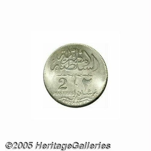 <B>Sultan Fuad 2 Piastres 1920H, </B></I>KM325, MS64 NGC, a choice example of this very scarce type with light toning over full mint luster. Struck during the post World War I occupation of Egypt by the British.