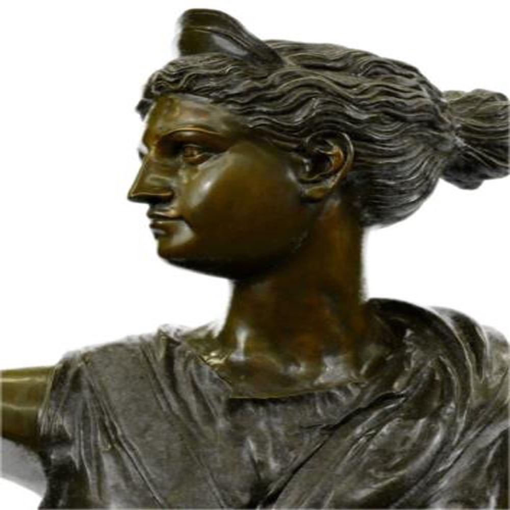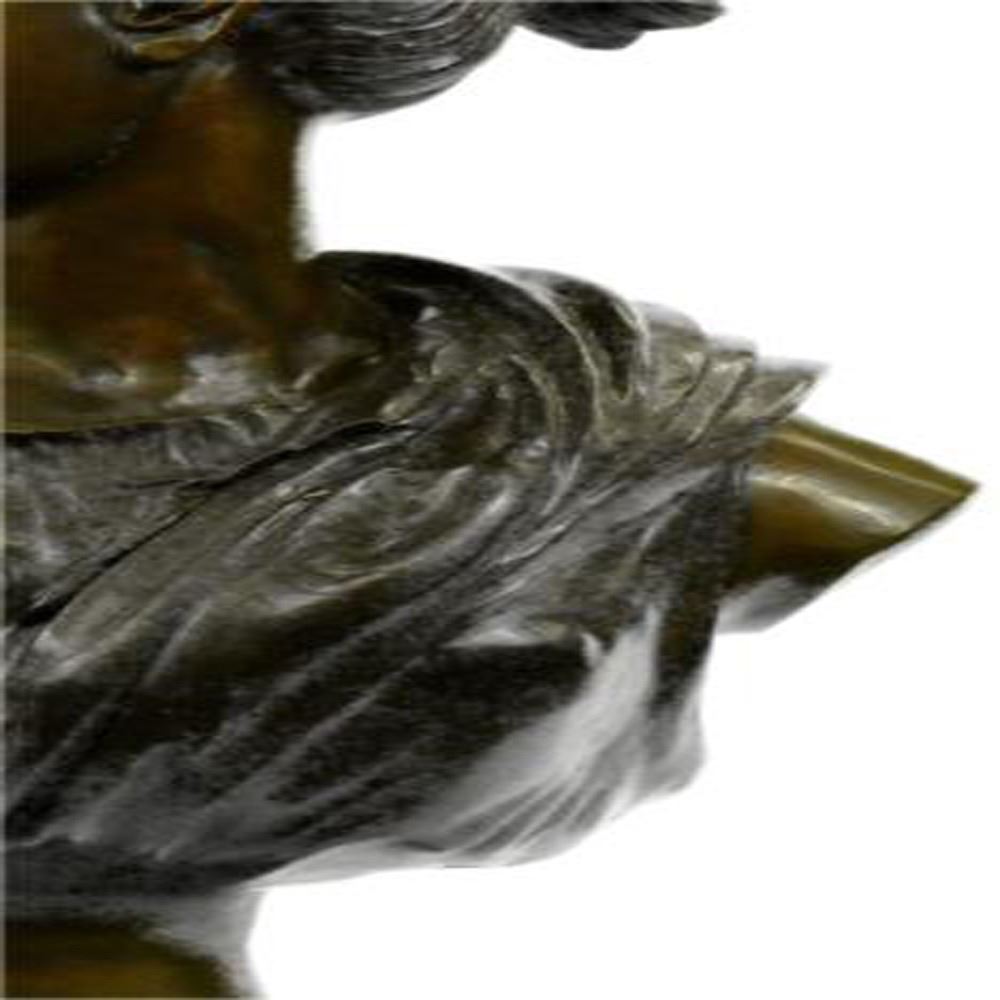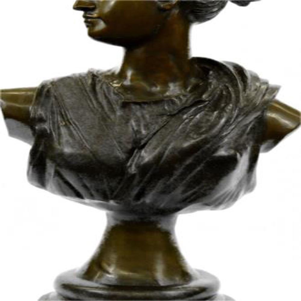 The last of the Macedonian rulers of Egypt, Cleopatra VII has been preserved in legend as a woman of formidable intellect and ambition who used her beauty and charm to advance Egypts fortunes. In 51 B.C. She became joint ruler with her father Ptolemy XII and then with her brother and husband Ptolemy XIII. When he died in 47 B.C. Her younger brother also her husband Ptolemy XIV succeeded him. When Ceasar came to Alexandria, Cleopatra persuaded him to support her cause and she regained her throne and jointly ruled with their son Caesarion from 36 B.C. After Caesars death, she joined Mark Anthony hoping that he would help to restore Egypt to its past glory by using Romes power. Mark Anthony gave Cleopatra much of Romes eastern possessions but his Roman rival Octavian used this episode as a pretext to tUrn the Roman senate against Mark Anthony and begin a war against him Cleopatra. Augustus Octavian defeated him at the battle of Actium. Anthony and Cleopatra withdrew to Alexandria where they committed suicide. Cleopatra was a remarkable woman and a formidable queen. She was the only Ptolemaic ruler to learn to speak Egyptian. This Bronze Sculpture was casted using the Lost Wax Method. It has a brown patina and is mounted on a marble base. Bronze Dimensions with Marble Base: Height 42 X Width 23 inches. Weight: 80 LBS.