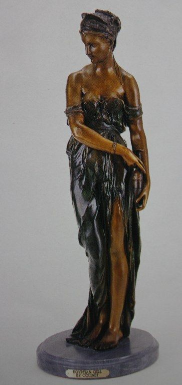 "Egyptian Girl" Bronze Sculpture - After Colinet - Beautiful Color Patina - Mounted On A Fine Italian Marble Base - Beautifully Detailed - Signed - Mint Condition - 32"H X 10"W - Lost Wax Cast Bronze
