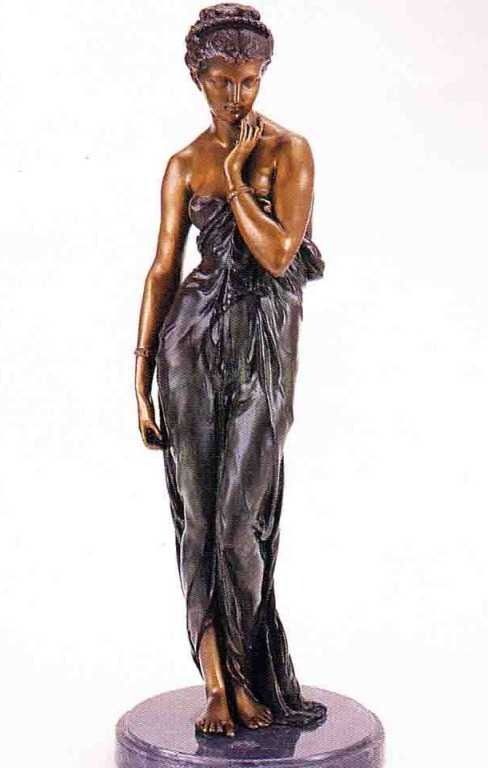 "Egyptian Girl" Bronze Sculpture - After Colinet - Beautiful Color Patina - Mounted On A Fine Italian Marble Base - Beautifully Detailed - Signed - Mint Condition - 32"H X 10"W - Lost Wax Cast Bronze