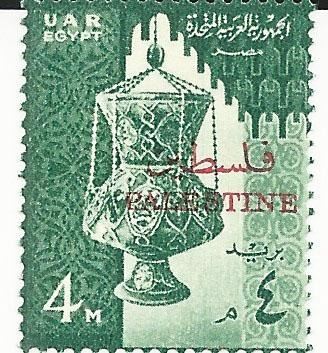 14th Century Glass Lamp, 4m green, issued 1958, with Palestinian Postamark