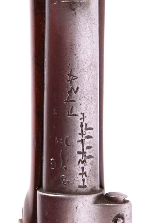 For your consideration is an Egyptian percussion conversion Snider carbine chambered in .577 Snider. Around the midpoint of the 19th Century, the benefits of breech loading were becoming obvious to all but the most entrenched military minds. A man with a converted rifled musket could fire 3 times faster than the muzzle loader. European armies began the arduous task of converting their vast stocks of muskets to breech loading arms. One of those conversions was Britain's first breechloader, the Snider rifle. The 25 ¾” round barrel is stamped with Egyptian hall marks. The original ramrod from when this rifle was a muzzle loader is fixed underneath the barrel. The converted breach shows a nickel plated binged loading port. The percussion nipple and hammer are in good condition. The hammer does not release when the trigger is pulled. The rifle has a wonderfully figured oil finished walnut stock. Serial Number: A1. This firearm qualifies as an Antique, and does not require FFL Transfer or NICS Background Check. Matt