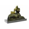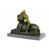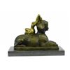 This exceptional French Art Nouveau figure calls upon classical influences. This stunning work captures a languid beauty lounging against a noseless sphinx, a nod to both the neoclassical tradition in French art and to the Egyptian fascination that blossomed during Napoleons empire. Exquisitely crafted and intriguing, figures such as this are highly desirable with collectors, especially those in such wonderful detailed. This Sculpture was crafted using the lost wax method. It rests on a marble base. Bronze Dimensions with Marble Base: Height 10 X Width 12 inches. Weight: 15 LBS.