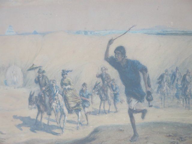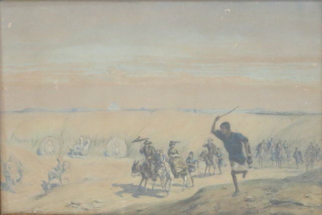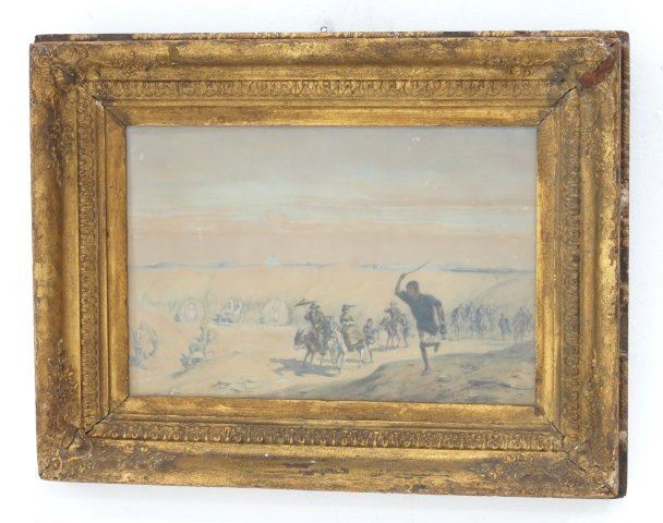 Orientalist pastel. Gilt framed. Approx. 12" x 18.5" without frame, 20" x 26" with frame. Good condition.