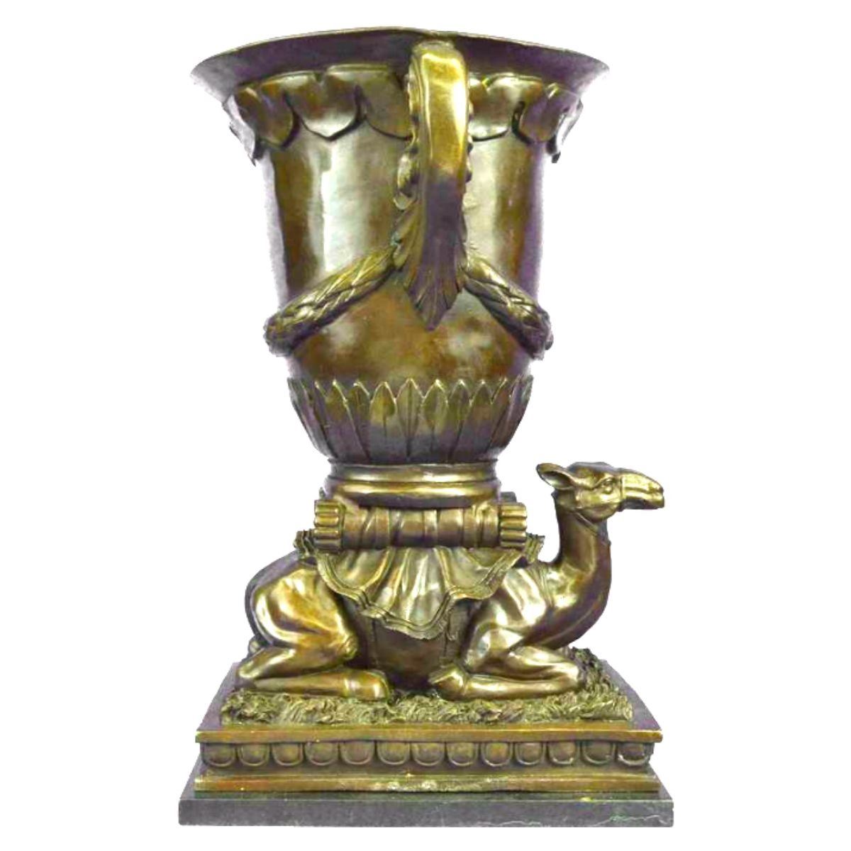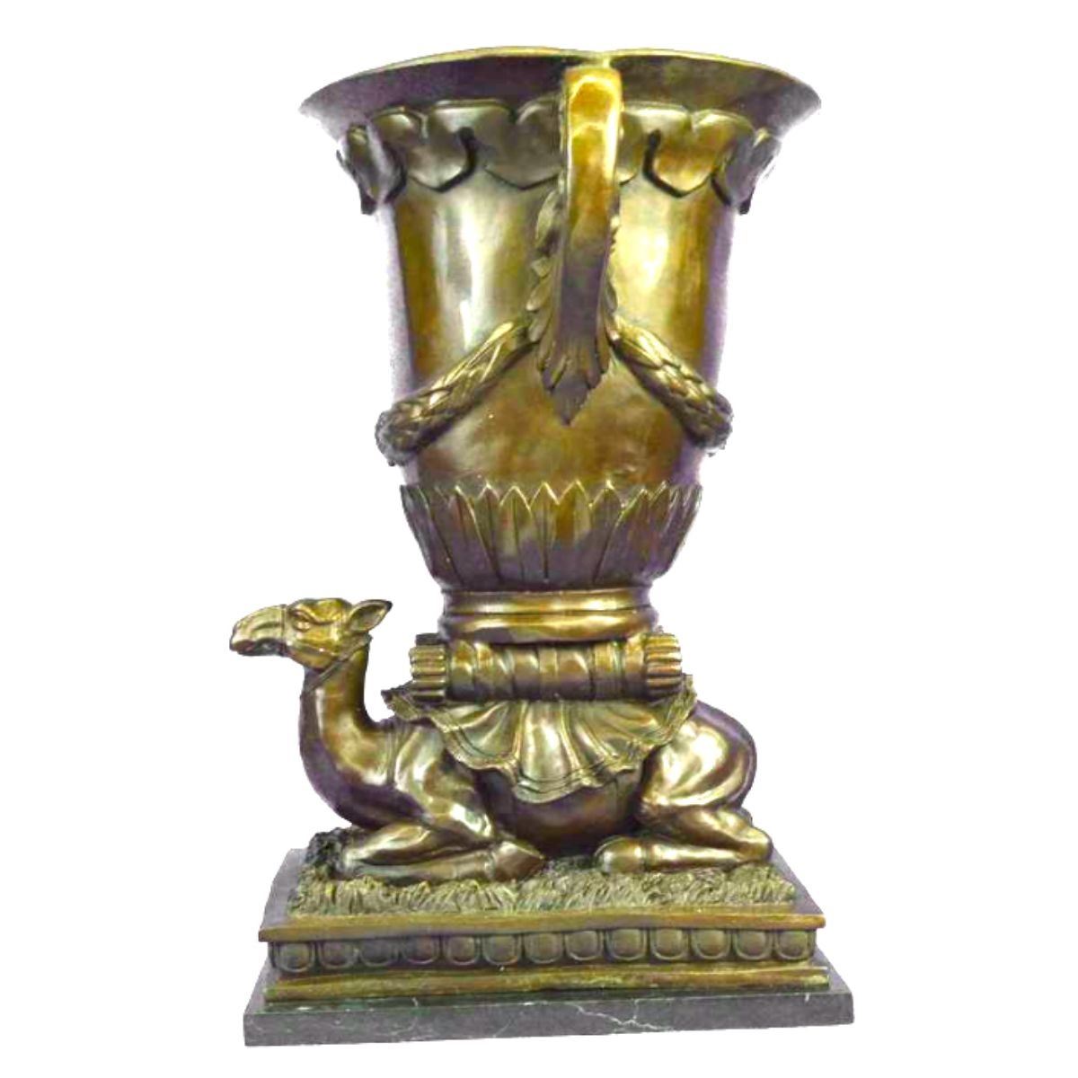 Egyptian-style camel form figural planter, vase. Lost wax casting method bronze, with brown patina, mounted on marble base. 20" H X 13" W. 37lbs.Â