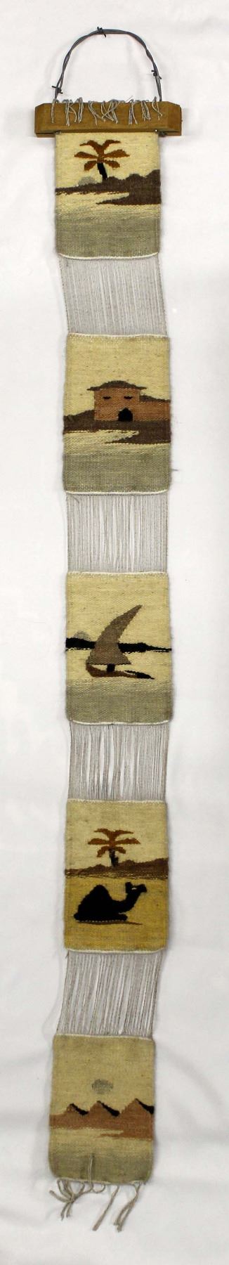 Egyptian Textile on Barbed Wire & Wood Hanger, measures 5.5'' x 54''L