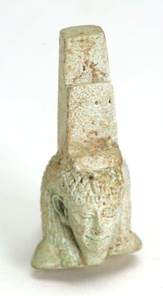 Egyptian pale green faience head of Isis fragment. Ptolemaic Period 305-50 B.C.