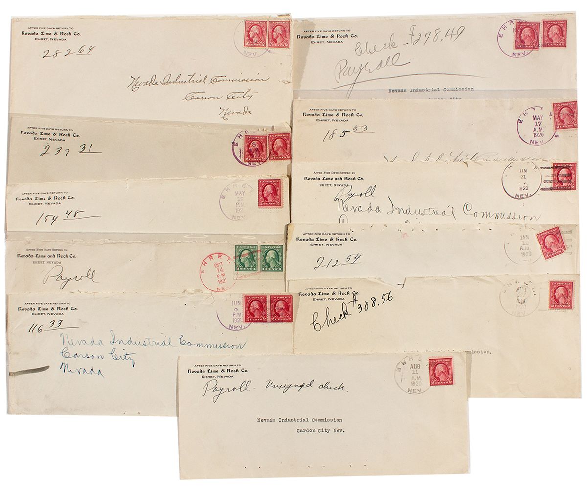 c1920 These covers are from the Clark County town of Ehrlet (DPO). All bear the corner advertisement for Nevada Lime & Rock Company of Ehrlet.These are from former Nevada State Tresurer Dan Franks' Collection. - HKA#66021