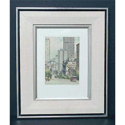 His eye for detail and meticulous execution of each plate has brought him many commissions from city officials and members of the business communities throughout Europe, especially in Austria and Germany. In 1973, after visiting the United States for the first time, he created a series of California etchings, adding a new dimension to his exquisite European scenes. In 1974 followed a commission to do a series of color etchings of Williamsburg, VA in commemoration of the United States bicentennial celebration. During his travels through the U.S. in the fall of the same year he was commissioned to do etchings of the Utah State Capitol in Salt Lake City and scenes of the East and West Coast.