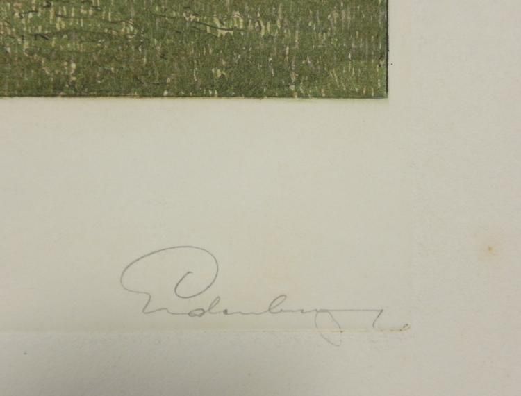 Come visit the infamous Independence Hall in Philadelphia, it will literally take your breath away.Title: Philadelphia Independence Hall: 1776-1976Medium: Colored etching on paperArtist: Josef Eidenberger Signature: Signed by artist, lower right in pencilRemarque: Liberty Bell lower leftImage size: 11 3/4" x 13 1/2"Sheet size: 16 3/4" x 21"Condition: Very good; creased upper left and right corner that can be matted out Biography: http://www.eidenbergeretchings.com/content.php?c=josef_eidenberger