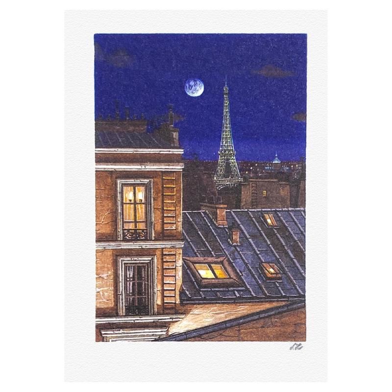 "Eiffel Tower at Midnight" is a limited edition lithograph on paper by Liudmila Kondakova, hand signed by the artist. Includes Letter of Authenticity. Measures approx. 7" x 6" (border), 3" x 2" (image).
