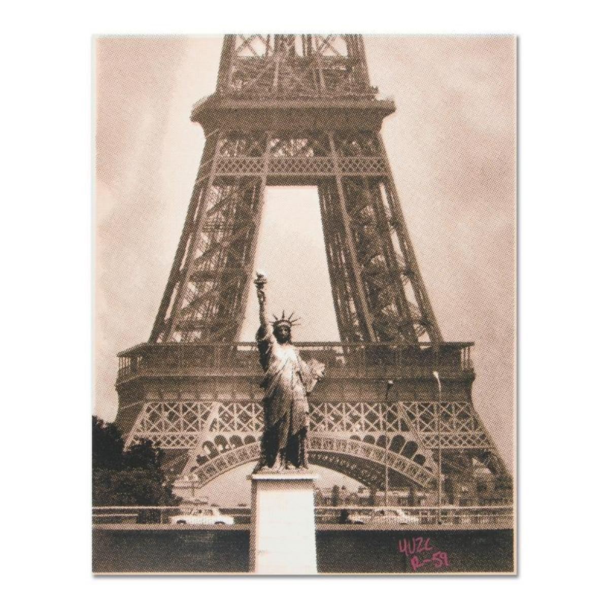 "Eiffel Tower" is a one-of-a-kind hand-pulled silkscreen on canvas by Ringo Daniel Funes - protege of Andy Warhol's apprentice, Steve Kaufman. This piece is hand signed by the artist and Includes Certificate of Authenticity. This piece comes from the Andy Warhol Legacy Series. Due to the nature of the canvas these, pieces will need to be mounted for framing. Measures approx. 12" x 16" (image).