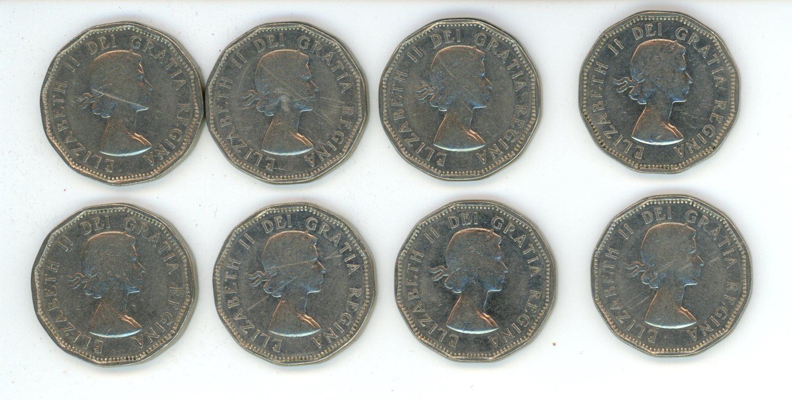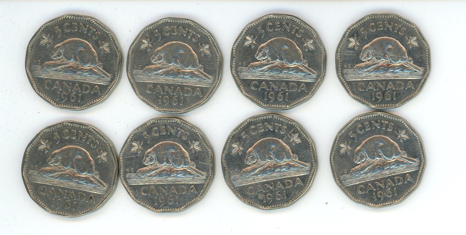 Eight 1961 Canadian 5 Cent Coins