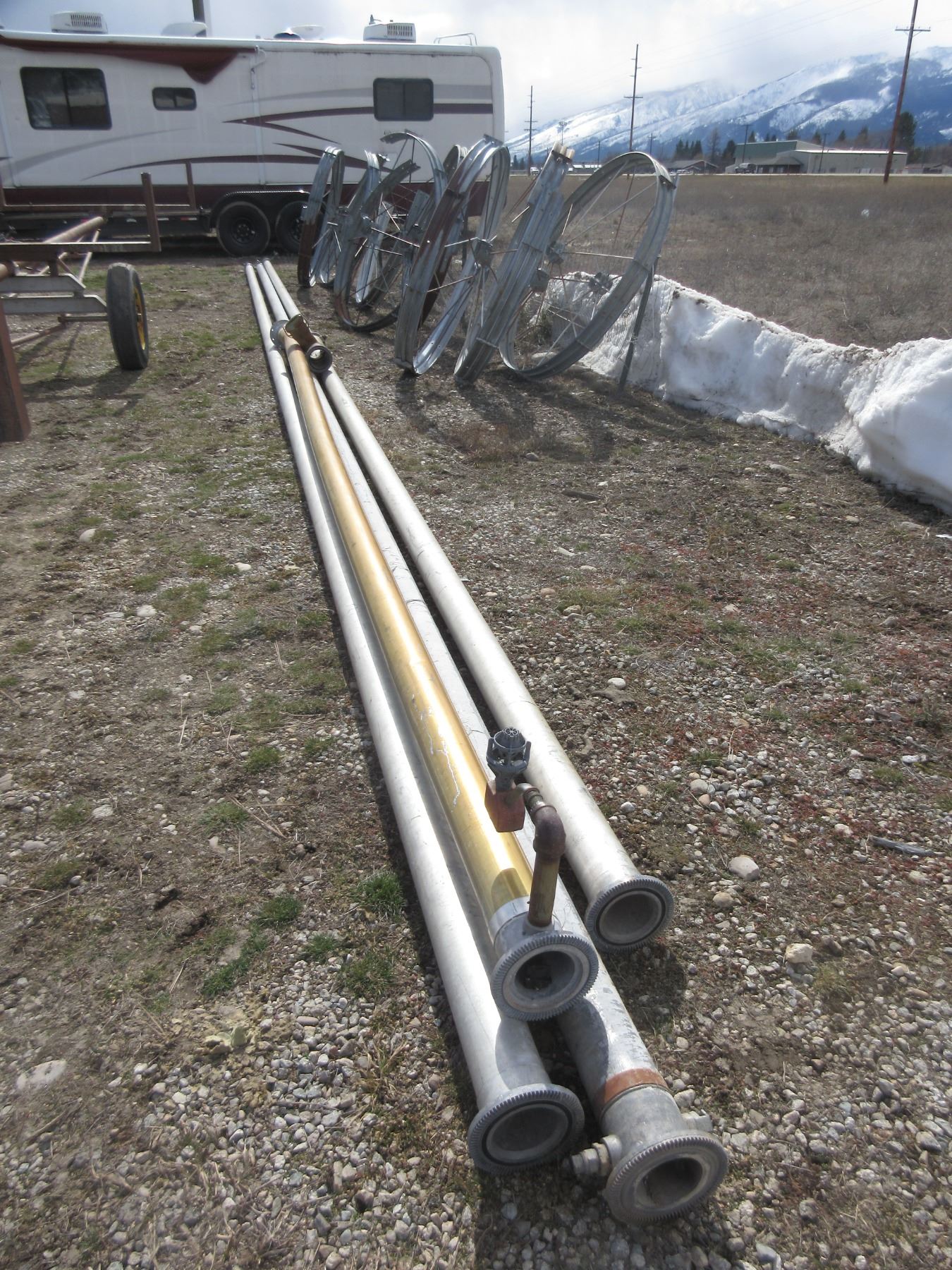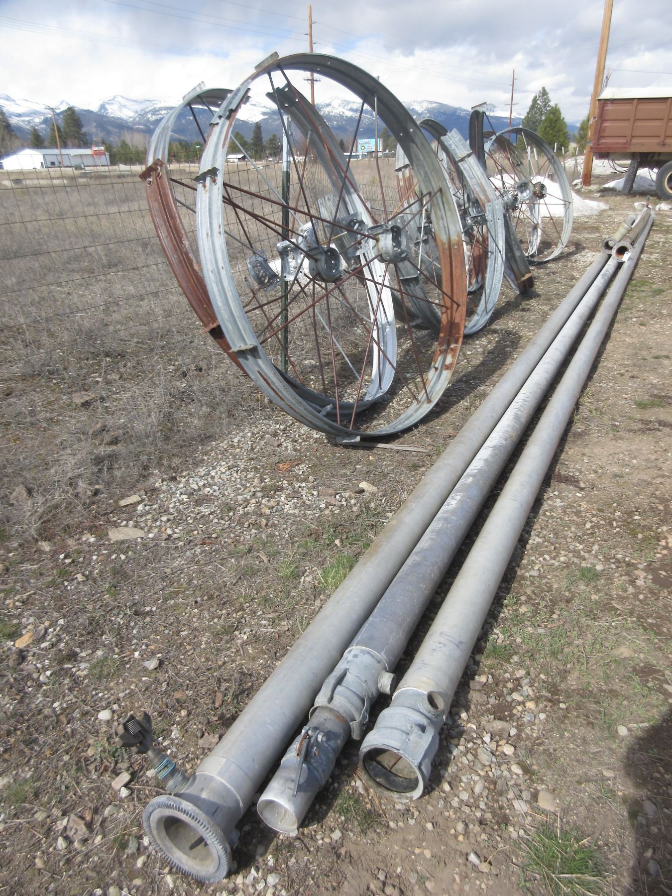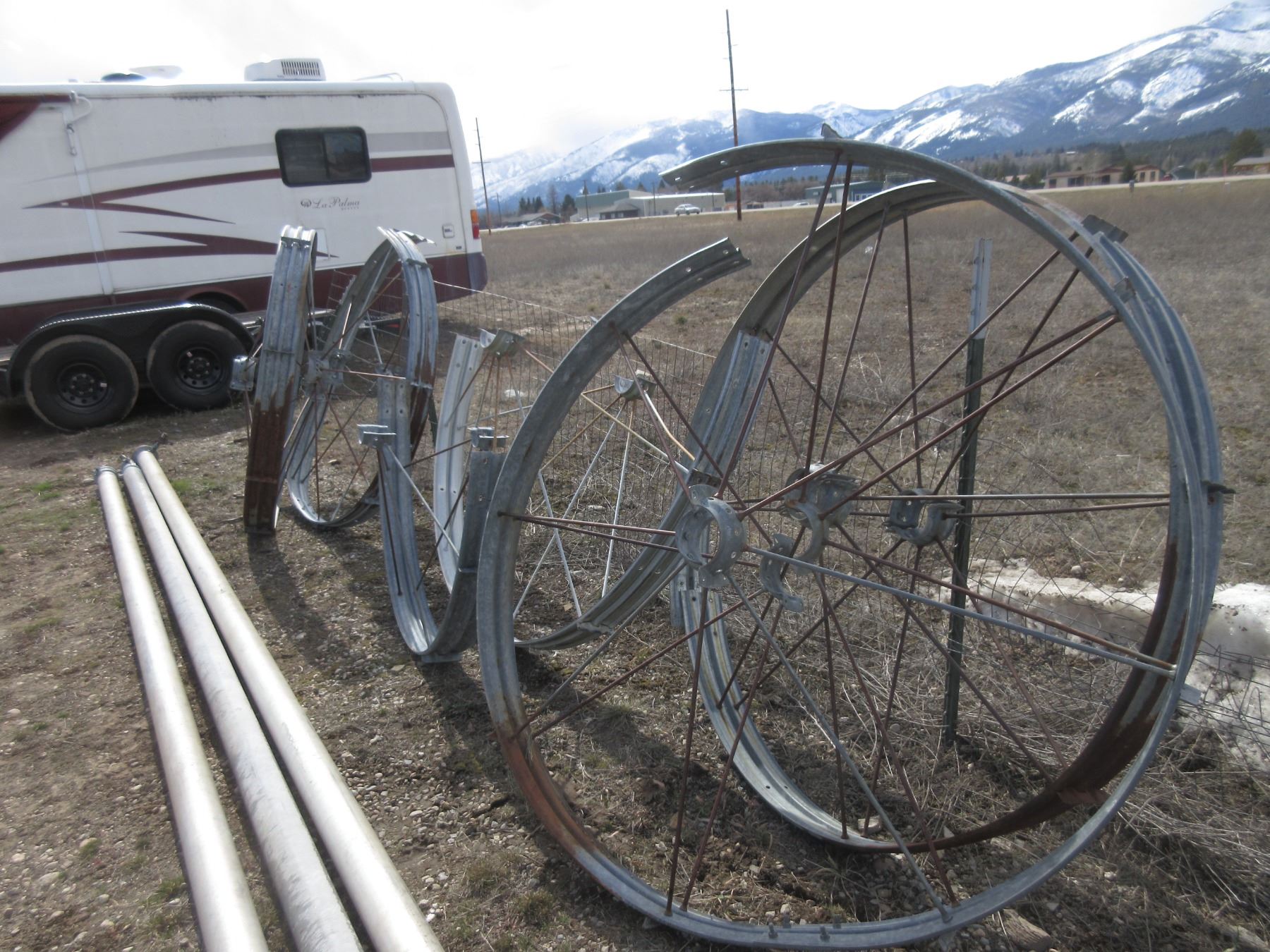 Eight 5' Wheel Line Wheels- Three 40' X 4" Wheel Line Pipe- 19' X 4" Wheel Line Pipe- 4"T- Some Wheels Need Bolted Together- Decent Condition