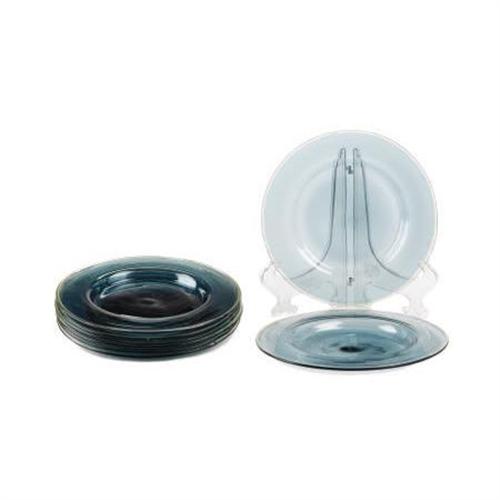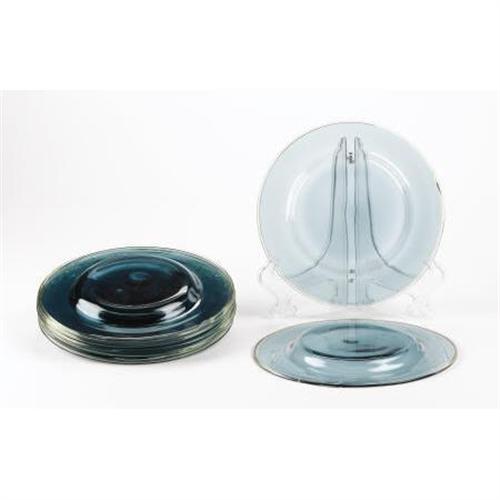 <B>Eight American Glass Plates<BR></B></I>Steuben<BR>Twentieth Century<BR>In blue with amber edges<BR>Unmarked<BR>8.5 inches diameter<BR><BR><b>Shipping:</b> Requires 3rd Party Shipping (<a target="_blank" href="http://www.heritageauctions.com/common/shipping.php">view shipping information</a>)