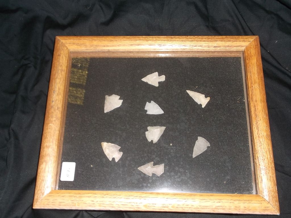 25. – 8tc – Eight Arrowheads Framed nicely. A piece of history to start an educational conversation with the youngin’s, tart a collection, add to your Native American motif or a great gift.