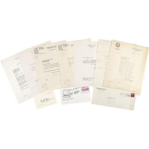 <B>Eight Autographs of Politicians Active During Franklin Roosevelt's Presidency,</B></I> on either autograph cards or Typed Letters Signed. Among those included are the following: Under Secretary of War <B>Robert Patterson,</B></I> 1936 Republican presidential candidate <B>Alf Landon,</B></I> 1940 Republican presidential candidate <B>Wendell Wilkie</B></I> (2 items), Senator <B>Arthur Vandenburg,</B></I> New Hampshire Governor <B>John Winant.</B></I> <BR>All items in very good to fine condition. <I>From the collection of Henry E. Luhrs.</B></I><BR><BR><b>Shipping:</b> Miscellaneous Collectibles, Smal (<a target="_blank" href="http://www.heritageauctions.com/common/shipping.php">view shipping information</a>)