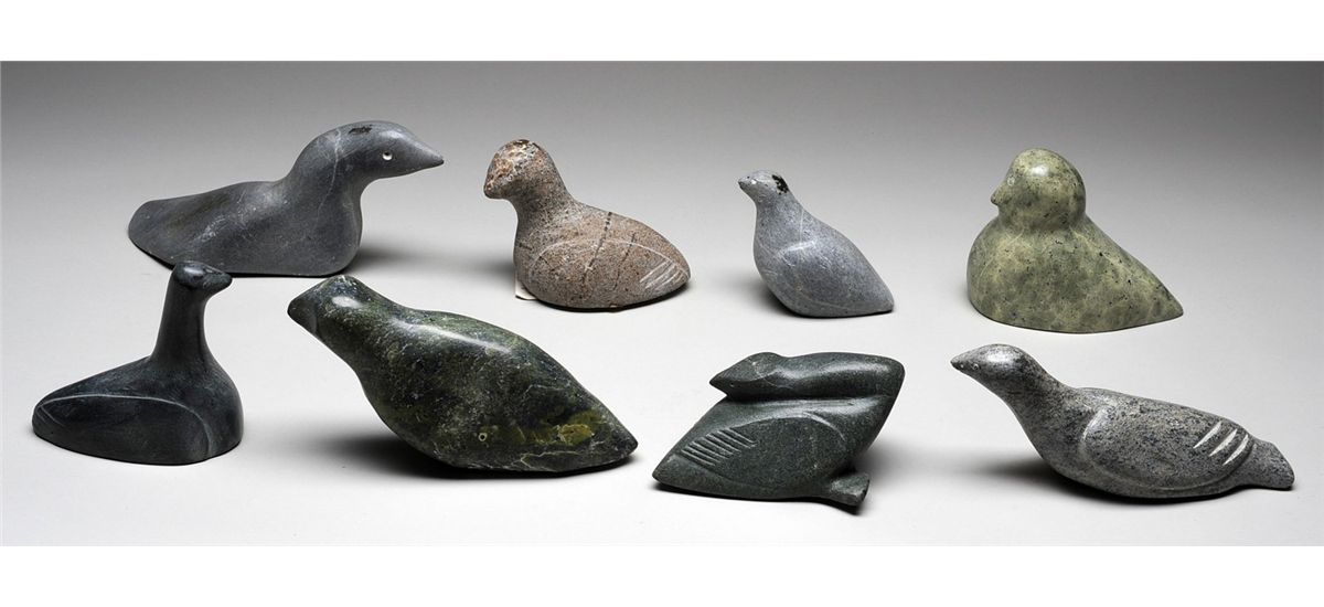 Eight Bird and Seal Carvings From Various Artists and Communities Including Adamie 4" L. - 9" L. All in Good Condition