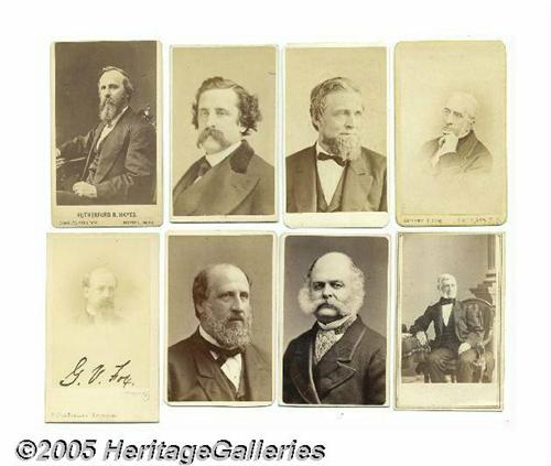 <B>Eight CDVs of an Eclectic Group of 19th Century Public Figures</B></I> Eight (8) cartes de visite including: President Rutherford B. Hayes; George Bancroft; Ambrose Burnside; Schuyler Colfax; Whig Senator Robert Winthrop; New York City Mayor John Hoffman; Tammany Hall politician William "Boss" Tweed, and a signed carte of Gustaves V. Fox, the U.S. Ambassador to Russia under Abraham Lincoln. A fine assortment of historical personalities. Lot:251