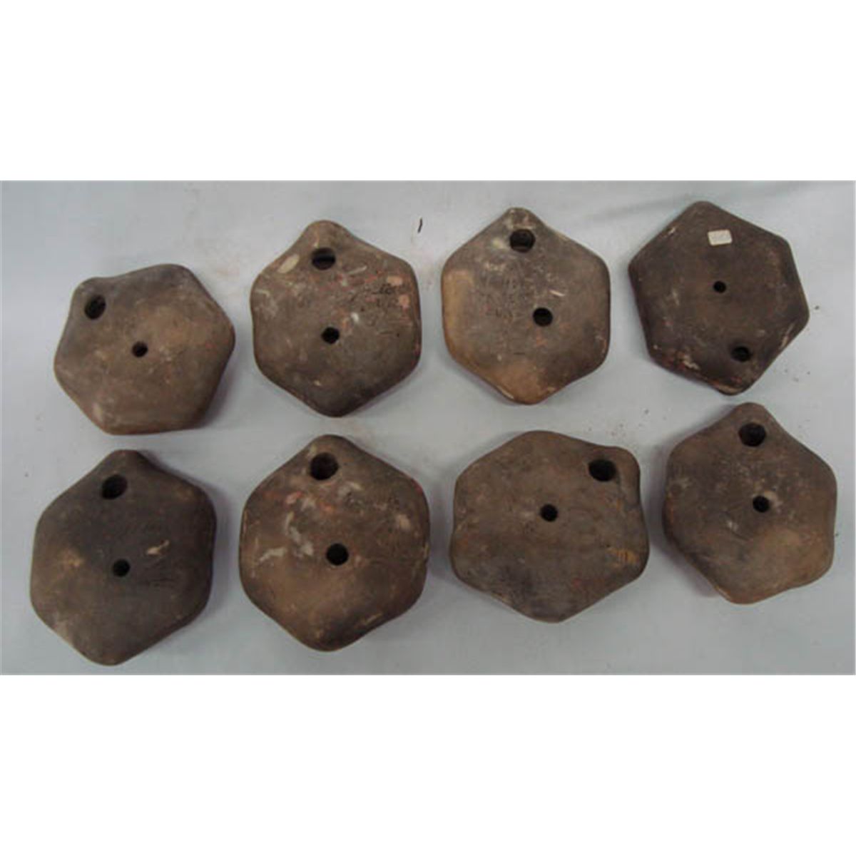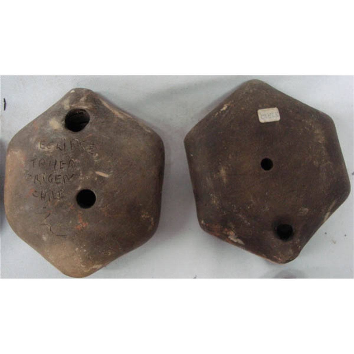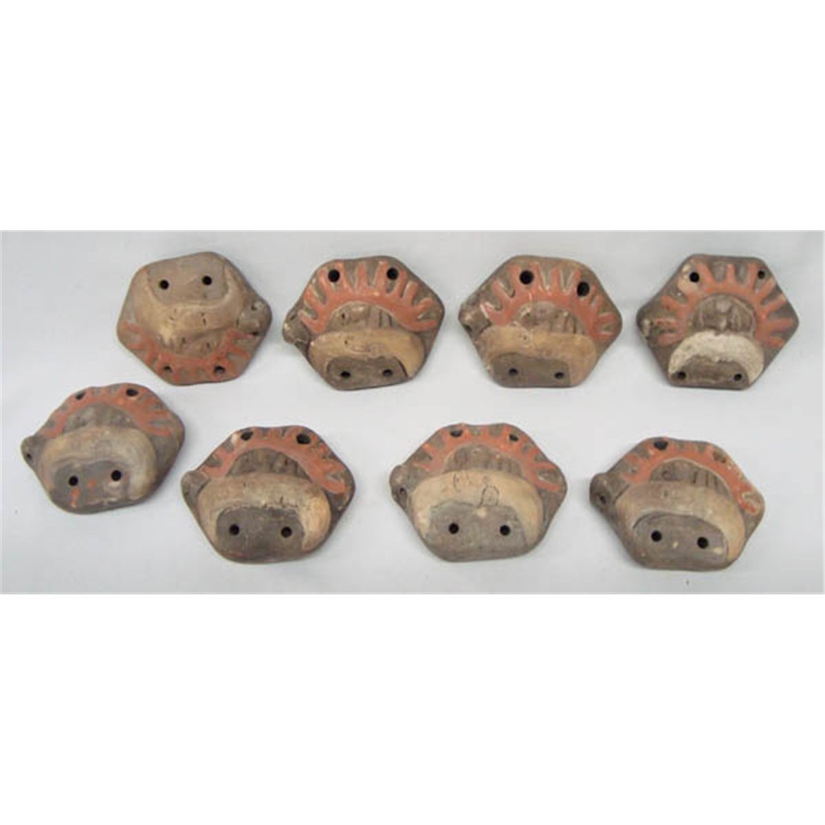 Eight Chilean Ocarina Clay Flutes. Largest 4.25x3.5''. With a history that goes around the world only to come back again, the little Ocarina flute can boast of both an ancient Aztec and Mayan pedigree. Old samples of ocarinas unearthed in historic sites in Central and South America. Buyers Pay Actual Shipping and Handling Charges(see terms and conditions for more information)