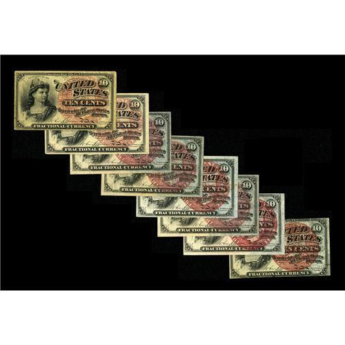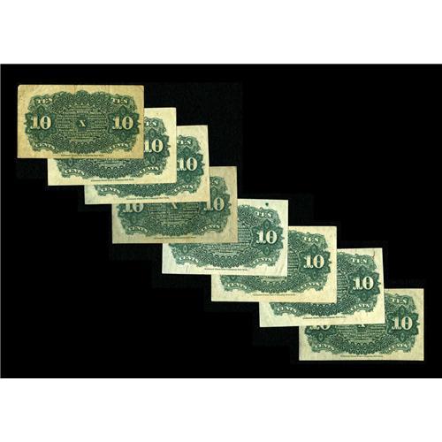 <B>Eight Fourth Issue 10c Notes.</B></I> Fr. 1257 <B>Very Fine,</B></I> Fr. 1258 <B>About New,</B></I> Fr. 1259 (Five) one <B>Extra Fine</B></I> and four <B>About New,</B></I> and Fr. 1261 <B>About New.</B></I> <BR><I>From The Collection of Louis E. Eliasberg, Sr.</B></I><BR><BR><b>Shipping:</b> Coin/Currency (<a target="_blank" href="http://www.heritageauctions.com/common/shipping.php">view shipping information</a>) <BR><BR><B>Important notice:<