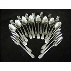 Eight Georgian silver dessert spoons, various dates, together with twelve matching silver dessert forks, London 1832, all with serpents head crest, for McBeth, (20) Est. 100/250