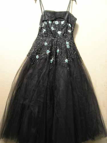 Eight mid-20th century evening gowns and two petticoats. £150-200
