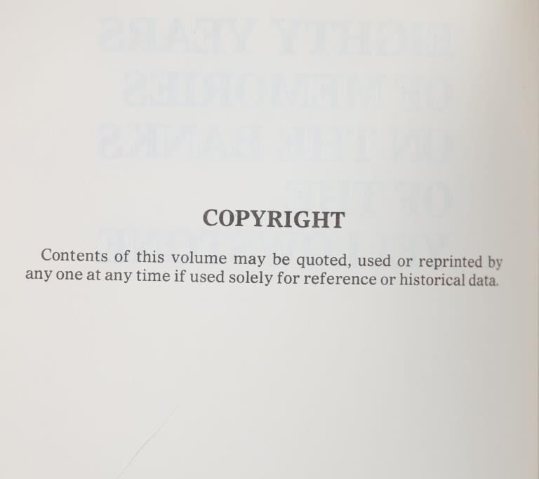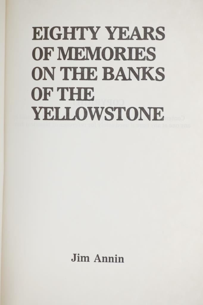 Featured in this lot is this Eighty Years of Memories on the Banks of the Yellowstone by Jim Annin. The book is wonderfully and professionally crafted construction that is a memoir of stories from The Yellowstone and Montana in general with dates and resources to describe period clear examples. The condition of this book is good with no obvious signs of damage and shows good overall condition. The measurements of this book is 8 3/4" x 5 3/4". The collective weight of this book is U6oz.