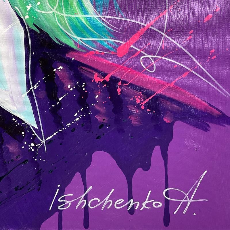 "Einstein" is an original acrylic painting on canvas by Alexander Ishchenko, hand signed by the artist. Includes Letter of Authenticity. Measures approx. 36" x 36" (image).