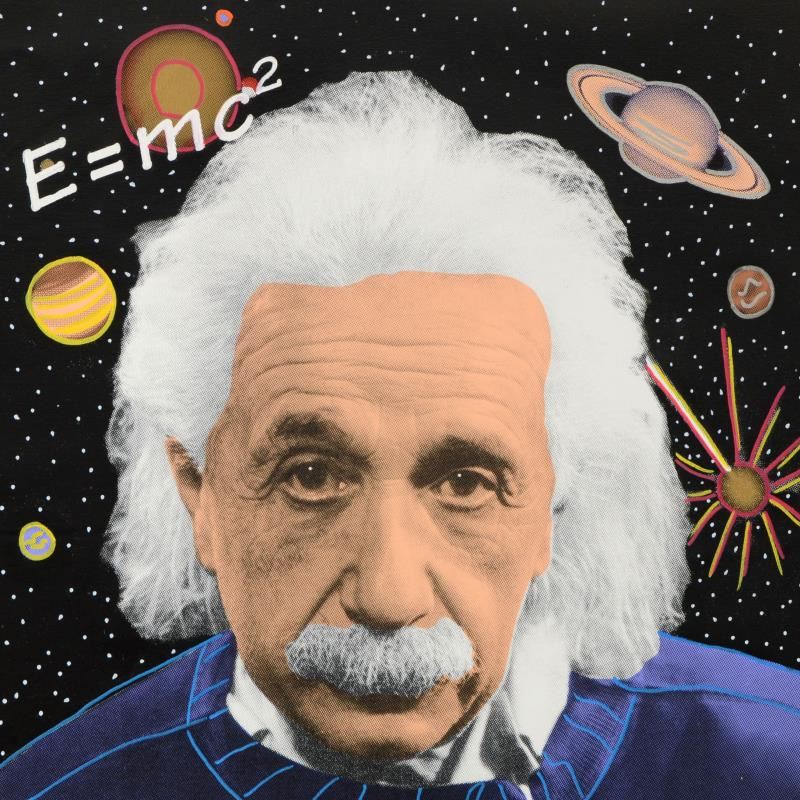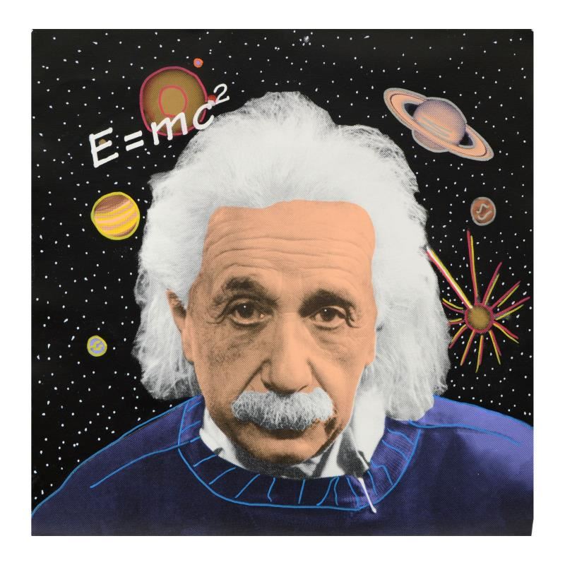 "Einstein" is a hand painted limited edition silkscreen on canvas from an HC edition by Andy Warhol protege Steve Kaufman (1960-2010). This piece is hand signed inverso. Includes Certificate of Authenticity. Measures approx. 24" x 24" (image).