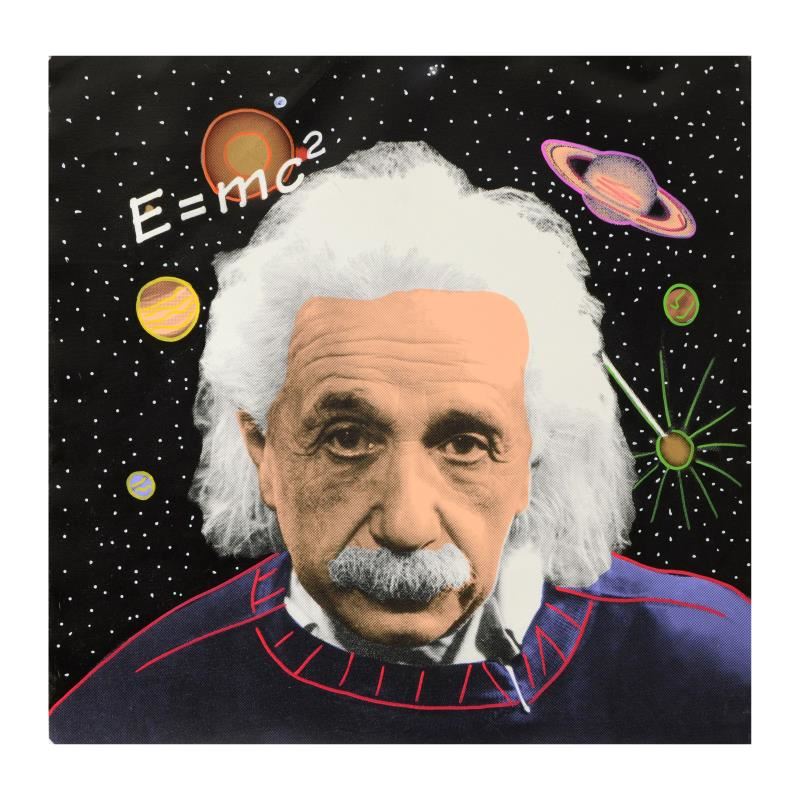 "Einstein" is a hand painted limited edition silkscreen on canvas from an HC edition by Andy Warhol protege Steve Kaufman (1960-2010). This piece is hand signed inverso. Includes Certificate of Authenticity. Measures approx. 24" x 24" (image).