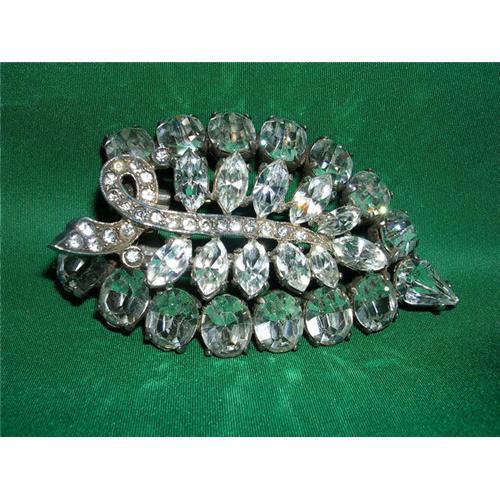 Exquisite Eisenberg Original Sterling Fur Clip Signed. Excellent condition. Large stones and three dimensional. Measures 3 inches long, 1 3/4 inches wide, and almost 5/8 inches deep. The back is marked "Sterling" and "Eisenberg."