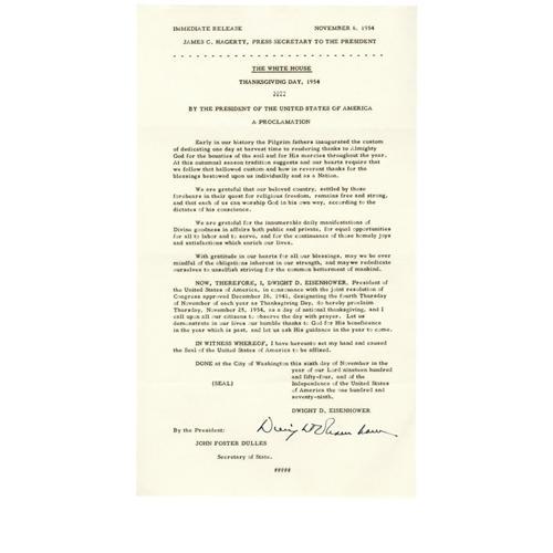 Eisenhower 1954 Thanksgiving Proclamation Signed Dwight D. Eisenhower 1954 Thanksgiving Proclamation