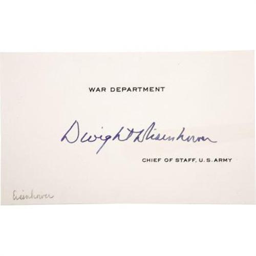 <B>Dwight D. Eisenhower Autograph Card as U.S. Army Chief of Staff,</B></I> 5" x 3". A splendid signature on a card imprinted by the War Department. Excellent condition. This item would certainly enhance a framed image of the general in uniform. <I>From the collection of Henry E. Luhrs.</B></I><BR><BR><b>Shipping:</b> Miscellaneous Collectibles, Smal (<a target="_blank" href="http://www.heritageauctions.com/common/shipping.php">view shipping information</a>)