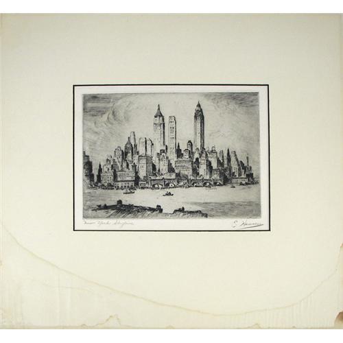 Ejnar Hansen (1884-1965) Etching, "New York Skyline", image size 4 3/4" x 6 5/8", pencil signed