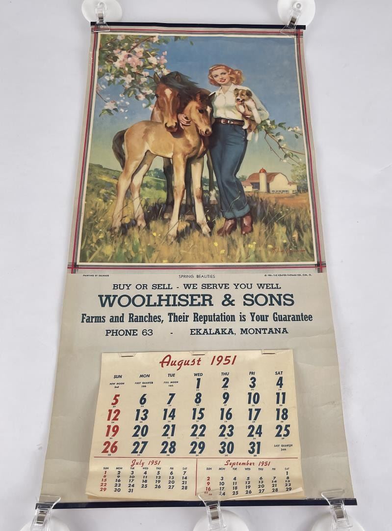 Very pretty calendar. Painting by Brunner. 1951. 11" by 23".