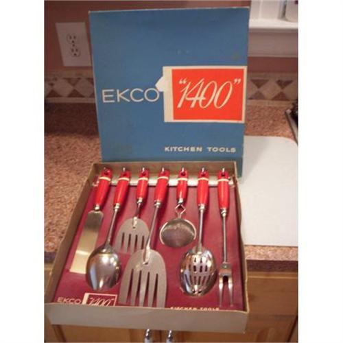 <tr><td>Title:Ekco A&J Red and White Stripe #1400 Utensil Set</td></tr>