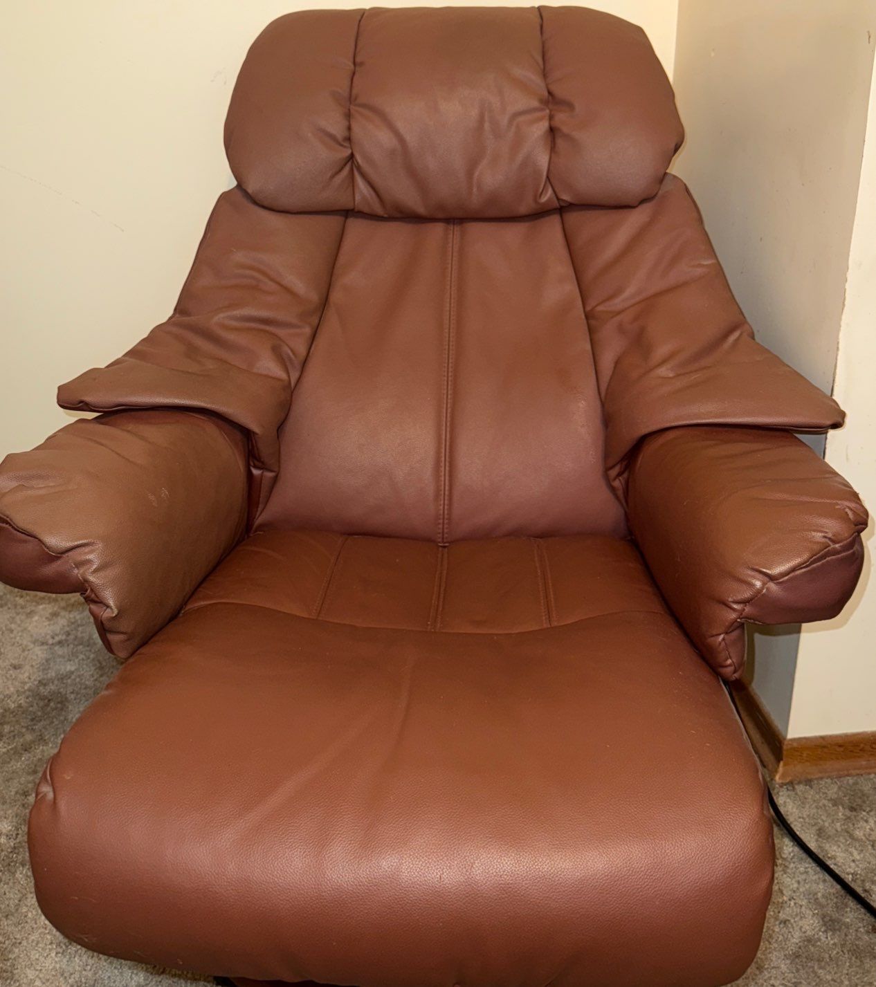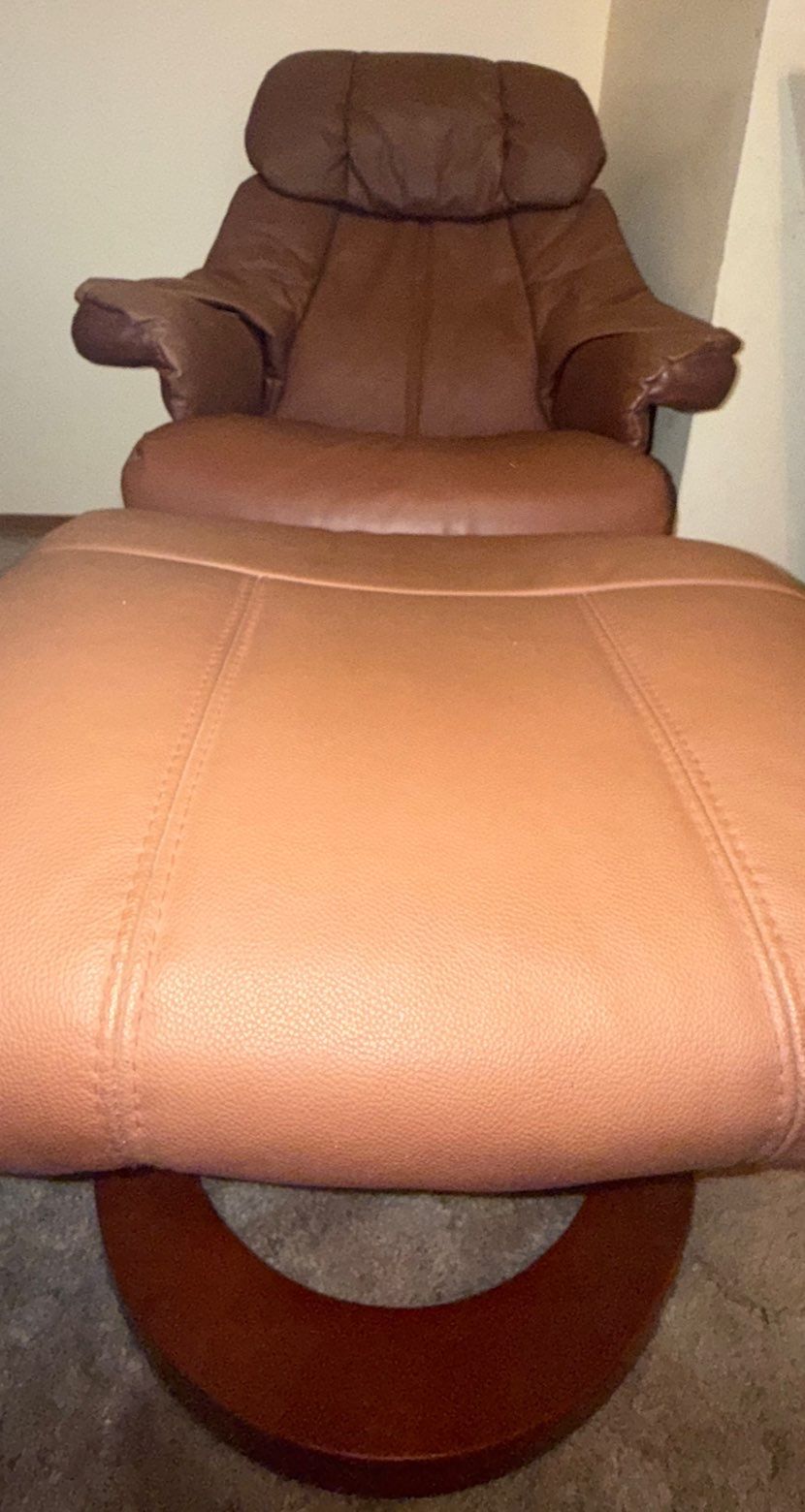 Ekornes Stressless Recliner & Ottoman- Tan Leather Great Shape!