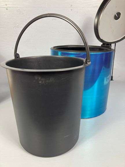 Quantity of 2 cans. 11.5"H, stainless steel, blue protective wrapping shown in photo.