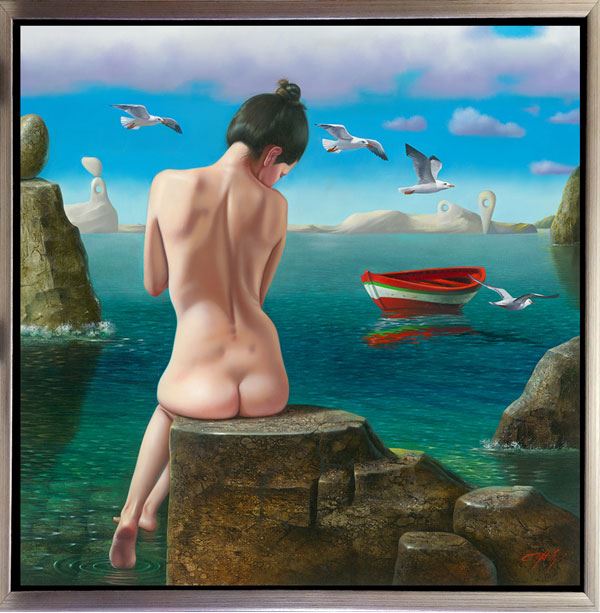 Magnificent limited edition on canvas. Hand signed by Calderon. This artwork comes framed ready to hang. Frame 34x34 Art 32x32 inches.