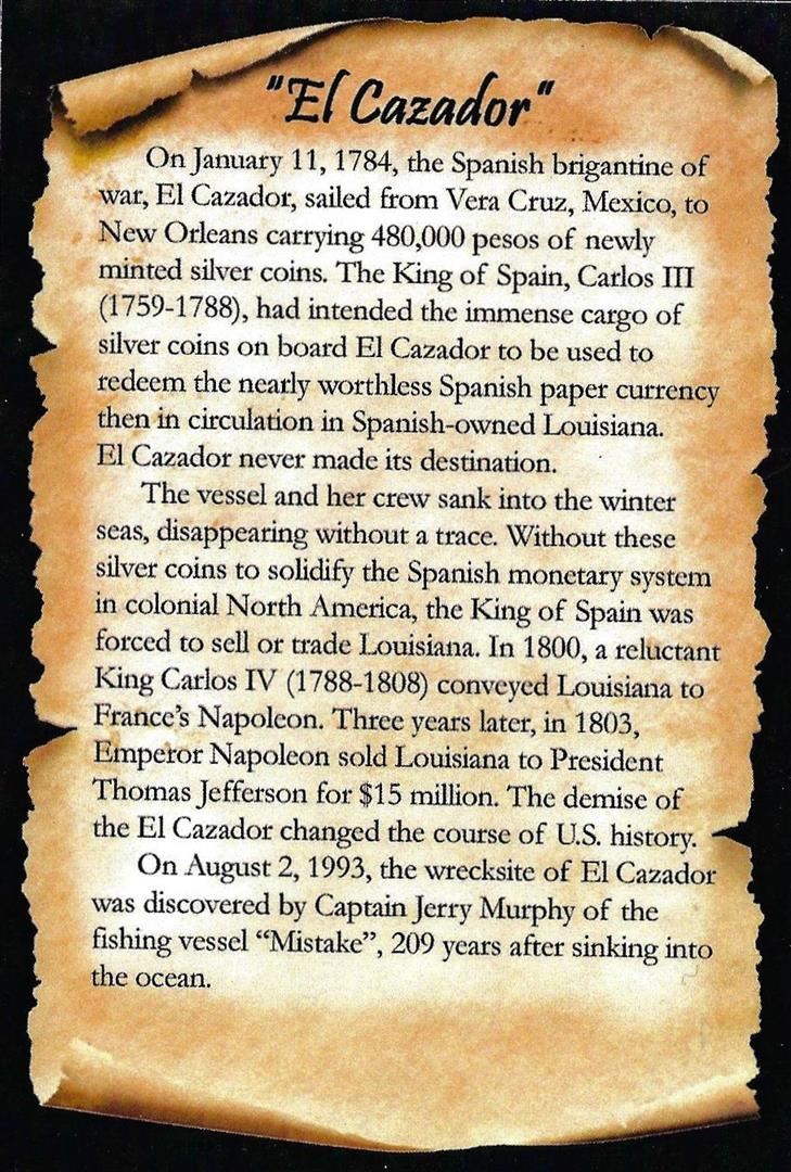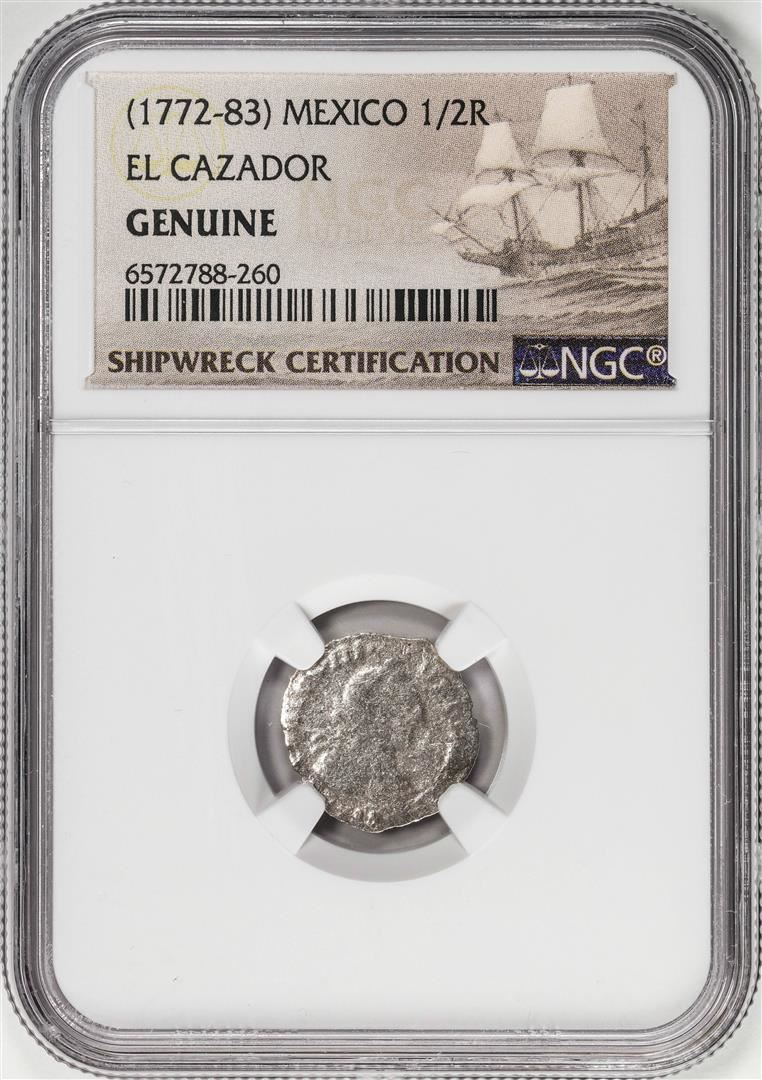 El Cazador Shipwreck (1772-83) Mexico 1/2 Real Silver Coin NGC Genuine w/ Story Card